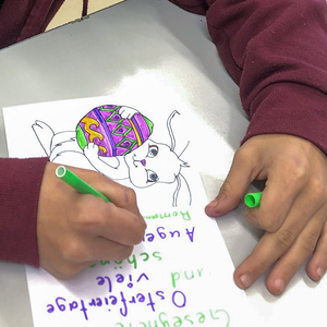Anja Asel, die auch Lehrerin an der Priv.-MS Ursulinen ist und Ines Kvar, die selbst auch als Krankenhausseelsorgerin im LKH-Univ.-Klinikum in Graz tätig ist, nahmen Kontakt mit den Schulen auf und koordinierten die Gestaltung der Osterkarten.