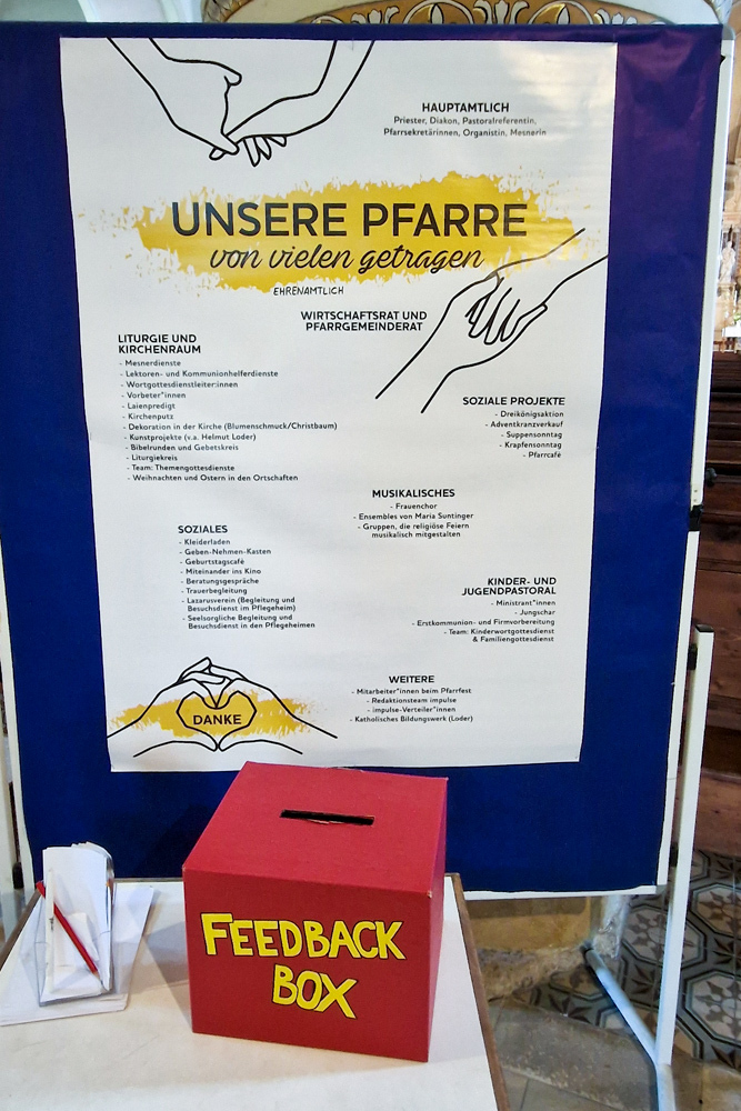 Wir sagen allen, die in unseren Sozial- und Caritaskreisen tätig sind, allen Caritas-Haussammler:innen, sowie jenen, die im Besuchsdienst aktiv sind, ein großes „Vergelt’s Gott“!