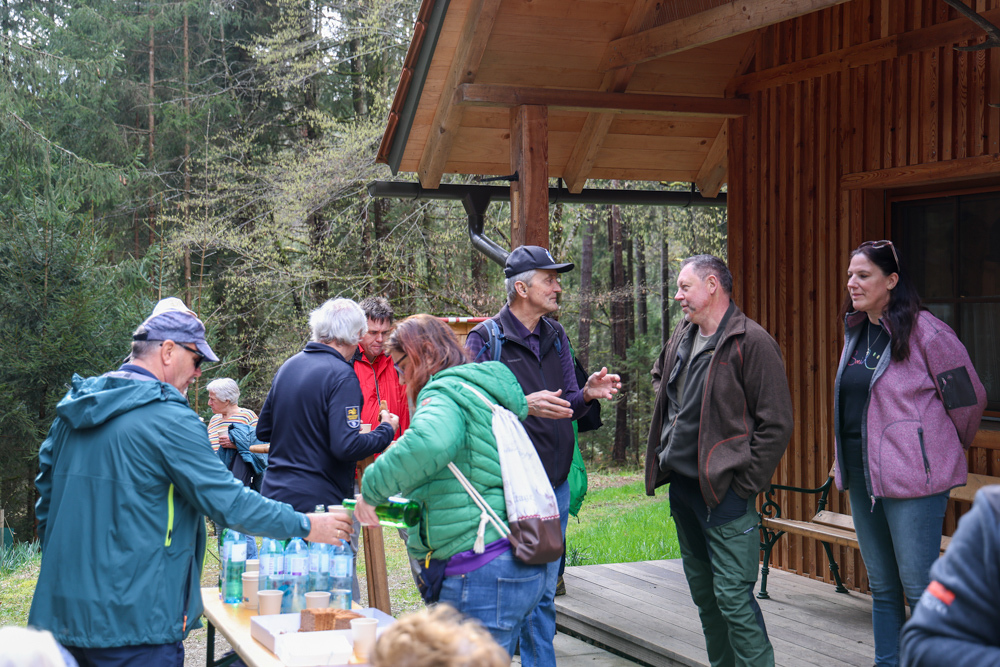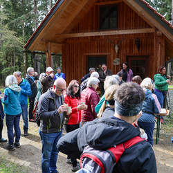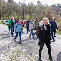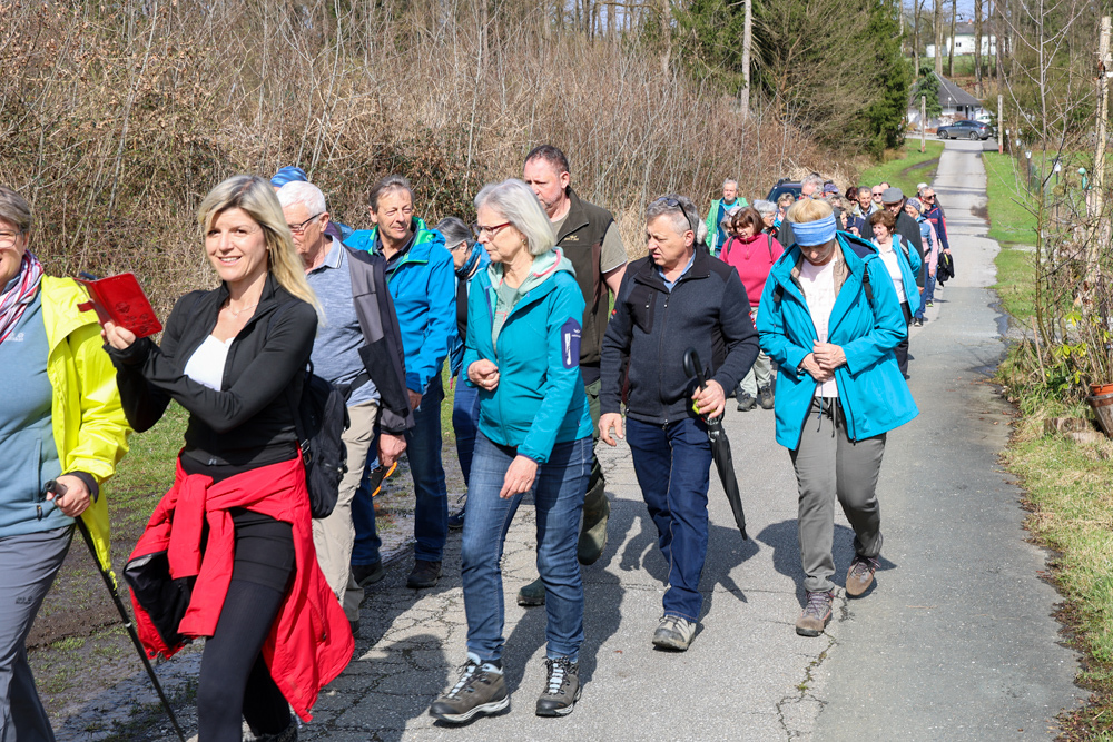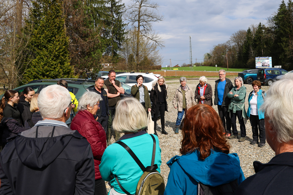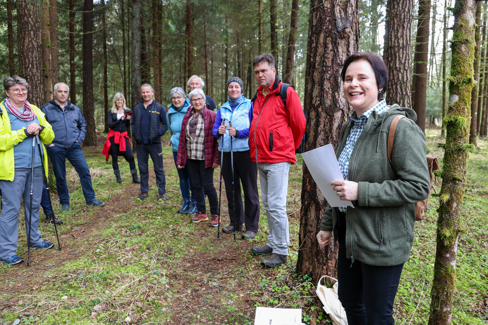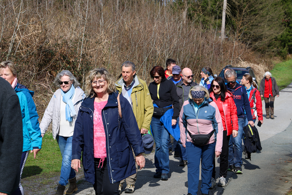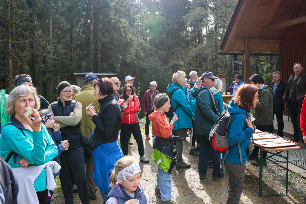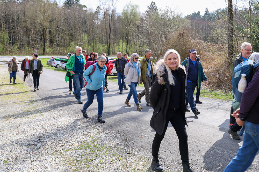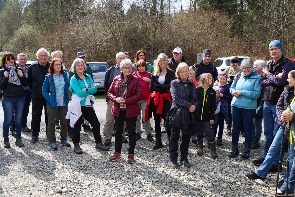 Bei strahlendem Sonnenschein trafen sich über 50 Naturbegeisterte am Sonntag, 30. März um 15:00 Uhr bei den Wundschuher Teichen. Auf dem Weg zum Woldteifl-Kreuz machten wir mehrmals Halt. So erzählten uns zwei Berg- und Naturwächter, ein Jäger sowie eine Försterin viel Interessantes über den Wald und wie sich der Frühling darin bemerkbar macht. Beim Woldteifl-Kreuz angekommen wartete eine kleine Stärkung auf uns. Natürlich durfte auch der spirituelle Aspekt nicht fehlen. Unsere Pastoralreferentin Ines Kvar gestaltete eine kurze Andacht beim Kreuz, bevor wir uns wieder auf den Weg zum Ausgangspunkt machten.