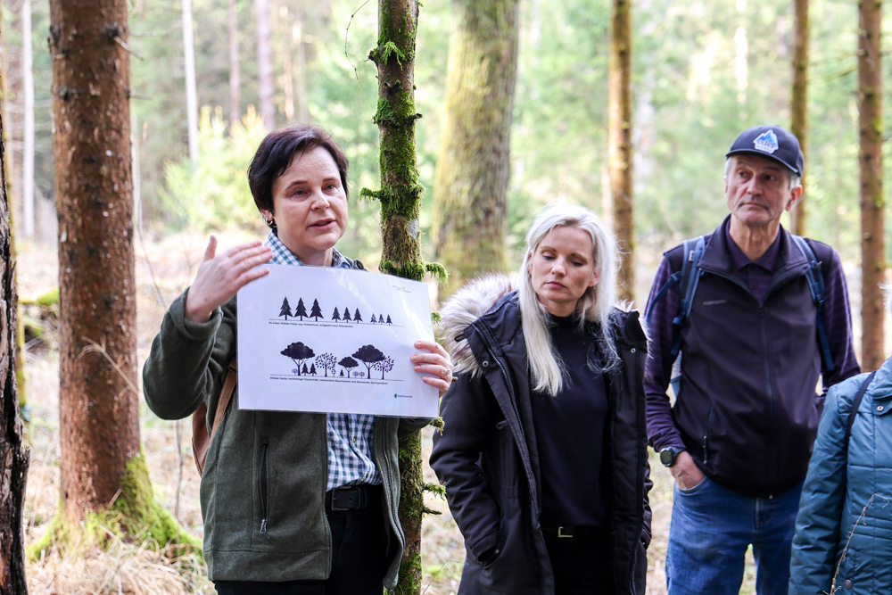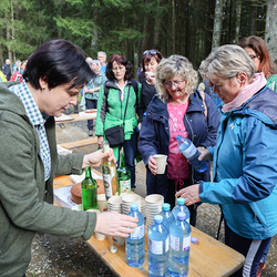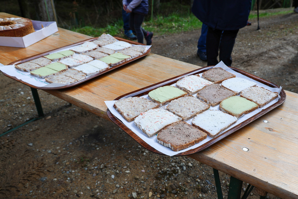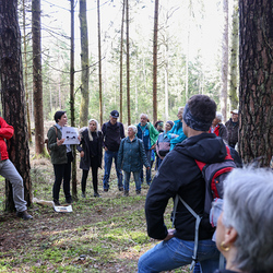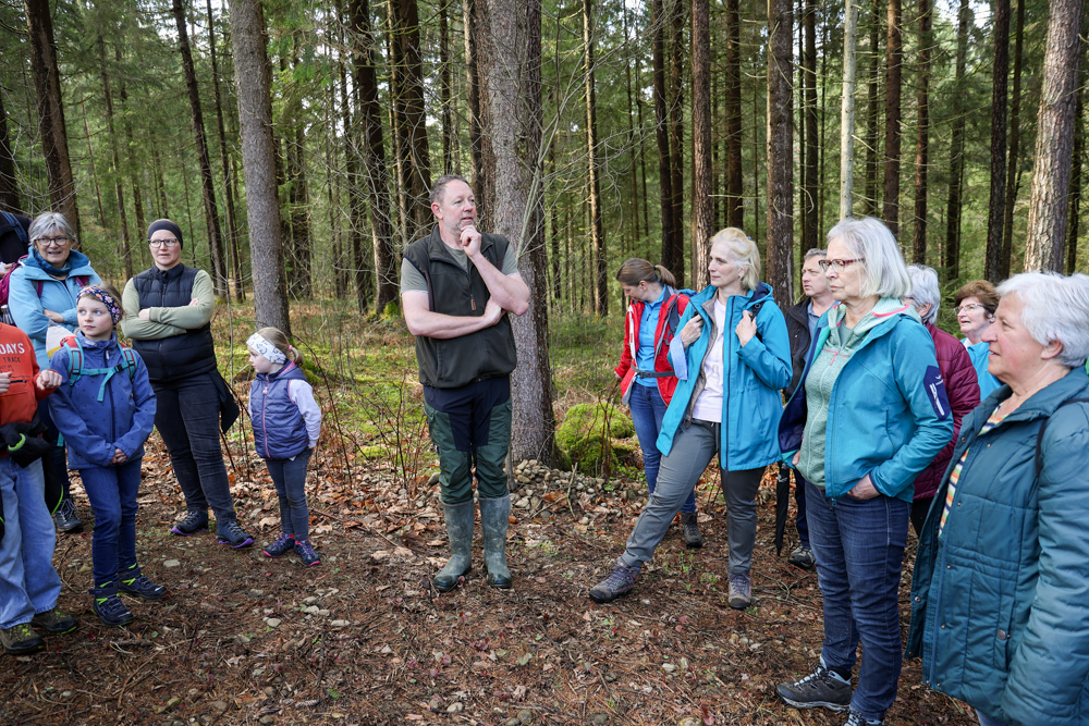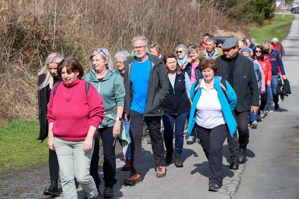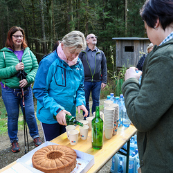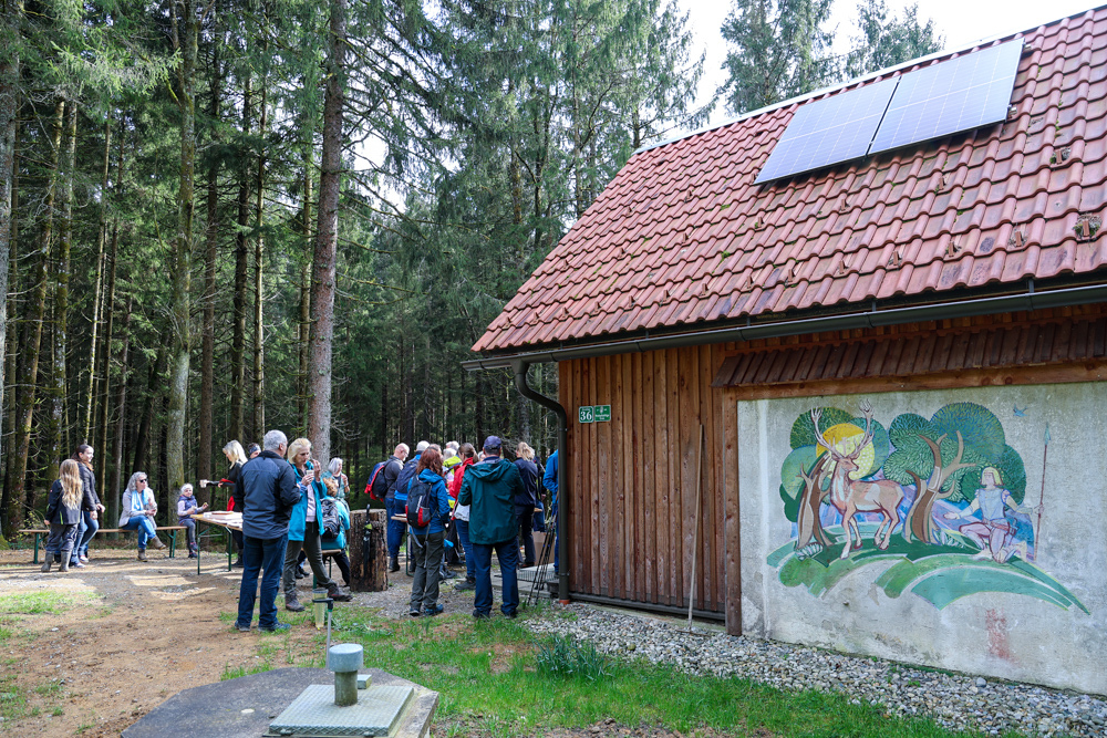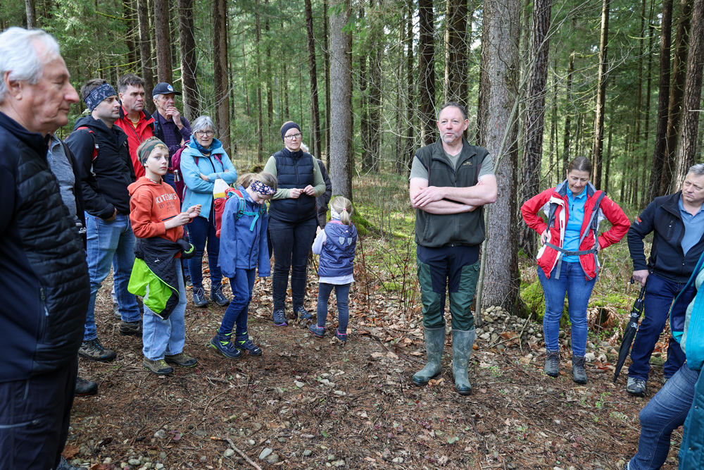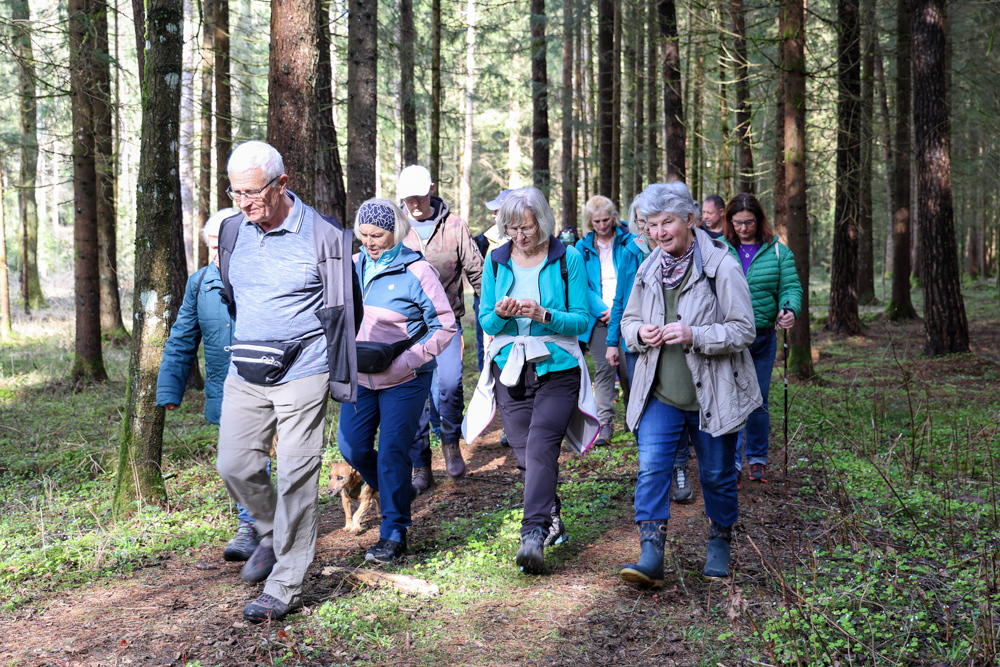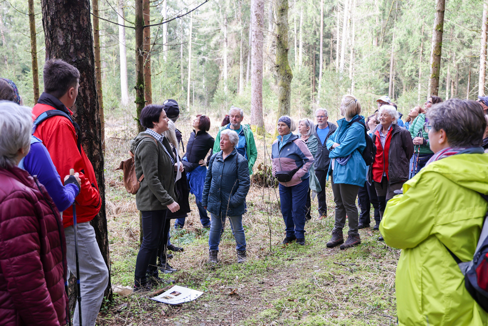 Bei strahlendem Sonnenschein trafen sich über 50 Naturbegeisterte am Sonntag, 30. März um 15:00 Uhr bei den Wundschuher Teichen. Auf dem Weg zum Woldteifl-Kreuz machten wir mehrmals Halt. So erzählten uns zwei Berg- und Naturwächter, ein Jäger sowie eine Försterin viel Interessantes über den Wald und wie sich der Frühling darin bemerkbar macht. Beim Woldteifl-Kreuz angekommen wartete eine kleine Stärkung auf uns. Natürlich durfte auch der spirituelle Aspekt nicht fehlen. Unsere Pastoralreferentin Ines Kvar gestaltete eine kurze Andacht beim Kreuz, bevor wir uns wieder auf den Weg zum Ausgangspunkt machten.