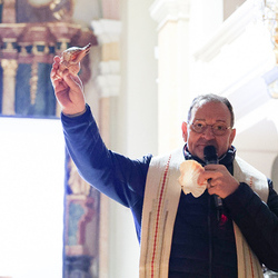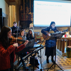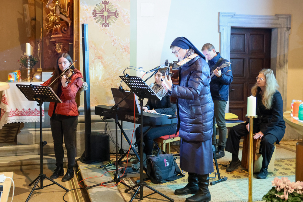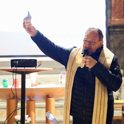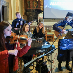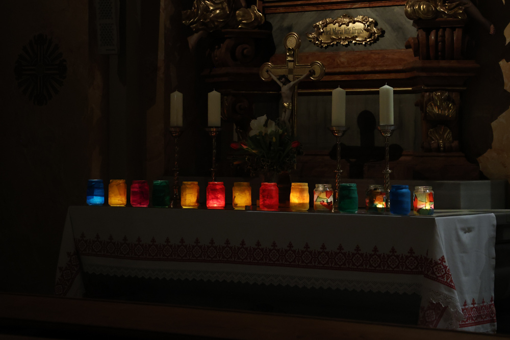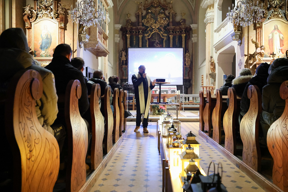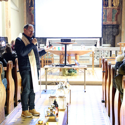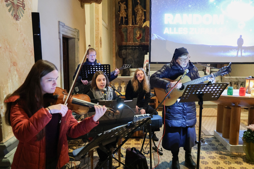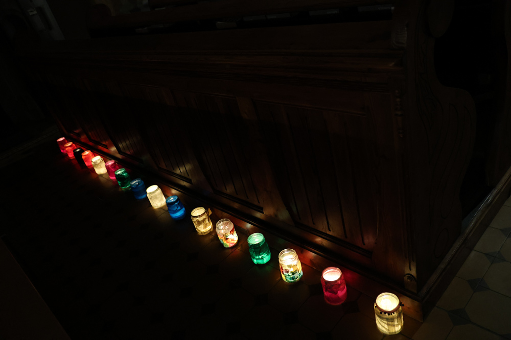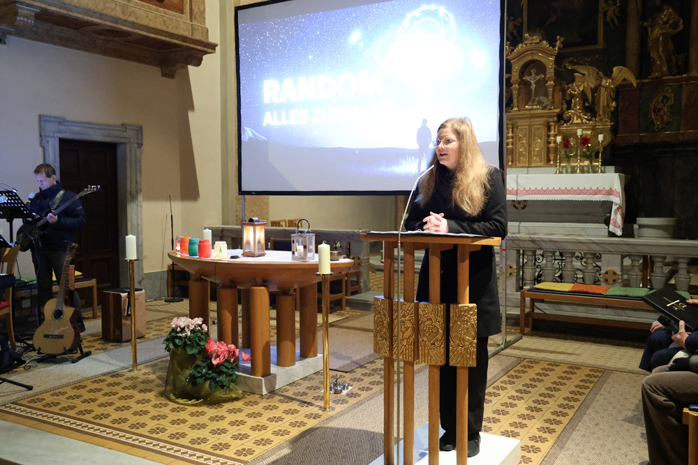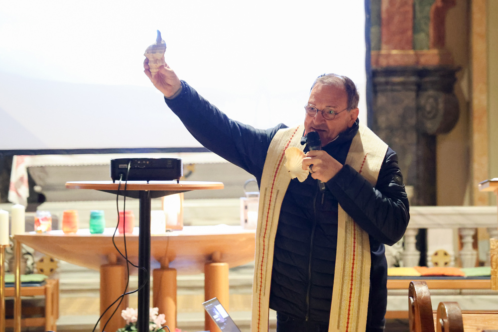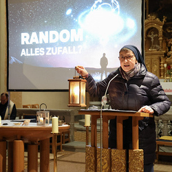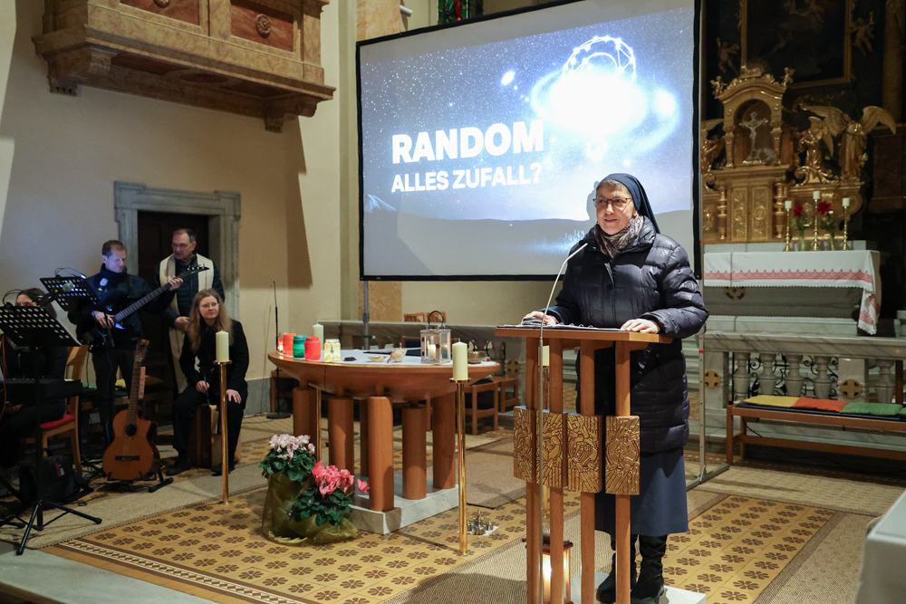 In der Kirche feierten wir dann eine Andacht. Auf eine kurze Bibelstelle folgte ein Impuls von Firmspender Gerhard Hatzmann. Dabei griff er sowohl das „Licht sein“, aber besonders auch das Thema des Firmkurses „Random – alles Zufall?“ auf und erzählte auch von seiner Berufung.