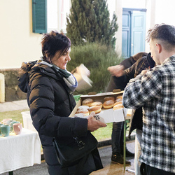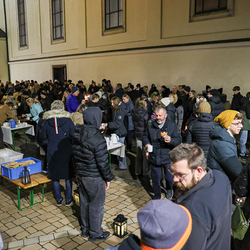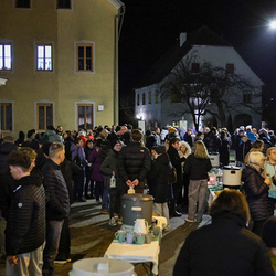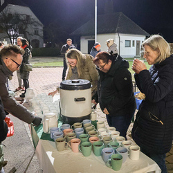 Nach dem Schlusssegen waren alle am Kirchplatz zu Tee und Krapfen eingeladen.