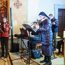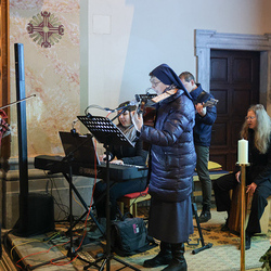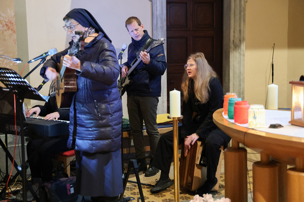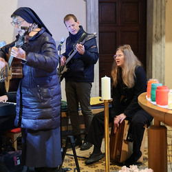 Sehr berührend war für viele die Zeit, in der die Patinnen und Paten, wie auch dann bei der Firmung, ihre Hand auf die Schulter ihres Firmlings legten. Währenddessen sangen wir „Komm bewohne mein Herz“.