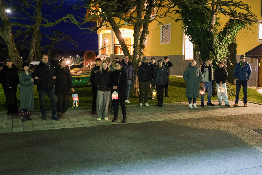 Sie trafen sich an vier unterschiedlichen Orten. Nach einem kurzen Impuls machten sie sich mit einer Laterne auf den Weg zur Wundschuher Pfarrkirche. Dabei unterhielten sie sich unter anderem über die Firmung, die Aufgaben der Patin/des Paten, Ängste und Hoffnungen über die Zukunft und wie man Licht sein kann.