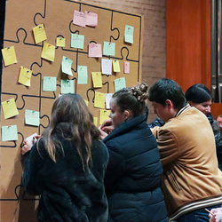 Wie die zahlreichen Besucherinnen und Besucher selbst ein Zeichen setzten oder setzen möchten, konnten sie anschließend auf Zettel schreiben. Diese wurden auf ein großes Puzzle gepinnt und soll uns zeigen, dass aus jeder kleinen Handlung zusammen in der Gemeinschaft etwas Großes entstehen kann. Unser Firmspender, Vikar Gerhard Hatzmann, griff diese Inputs in seinem Impuls auf: Gerechtigkeit, Gleichberechtigung und Frieden waren oft genannte Begriffe. Er rief dazu auf, sich Verbündete zu suchen und Gemeinschaften zu bilden, um sich für etwas einzusetzen, aber auch, um den Glauben zu leben.