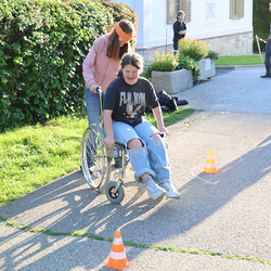 Blindes Vertrauen war beim Rollstuhlparcours, dem Gang der Sinne und beim durch den Garten gespannten Seil notwendig. Schlaue Köpfe waren bei der Millionenshow, dem Caritas-Kahoot (Handy-Quiz) und „Escape the Room“ (Rätsel im Schlosskeller lösen) gefragt. Auch die Rettung und Feuerwehr waren vor Ort und gaben Einblicke in ihre Arbeit und praktische Tipps. Mit Mehl gefüllte Luftballons wurden zu Squeezebällen, mit denen man sich in stressigen Situationen abreagieren kann, und mithilfe der Bibel wurde ein Rezept für köstliche Waffeln gemeinsam erarbeitet, welches natürlich auch gleich ausprobiert wurde. Wie sehr jemanden Alkohol beeinträchtigen kann, konnten die Jugendlichen bei „Spaß versus Rausch“ selbst ausprobieren. „Hoch hinaus“ führte viele hoch zu Kirchenglocken, während davor gemeinsam ein Turm aus Holzklötzen gestapelt wurde. Mit sich selbst konnte man sich bei den Stationen „Ich bin ich“ und „Something of Magic“ näher auseinandersetzen. Visionen für die Kirche der Zukunft wurden im „Raum der Stille“, unserer Schlosskapelle, entworfen. Viel über Kirche und Glaube gesprochen wurde auch mit unserem Firmspender Gerhard Hatzmann in der Bibliothek. Die „Geheimnisse“ der Sakristei wurden bei „Backstage“ gelüftet, wo auch das Chrisamöl kennengelernt werden konnte und die Firmspendung geübt wurde. Angelehnt an diese Salbung wurden bei „Salbungsvoll“ eigene wohlriechende Salben zusammengerührt.