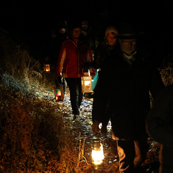 Nach einer guten halben Stunde erwartete uns schon das Team von Tobelbad am Kirchplatz mit Glühwein, Broten und Keksen, und zwei Bläser sorgten für besinnliche Klänge. Bei einer kurzen Andacht unserer Pastoralreferentin Ines Kvar waren wir alle eingeladen, eine Kerze zu entzünden. Dann machten wir uns auch schon wieder auf den Weg retour. Da es nun schon dunkel war, konnten die Lichter in unseren Laternen endlich ihre Wirkung entfalten und ließen eine sehr schöne Stimmung am Heimweg aufkommen. Am Ende hörten wir noch eine Geschichte über das Licht und lasen gemeinsam einen Text zur Dankbarkeit, bevor wir schlussendlich wieder am Bahnhof ankamen und sich unsere Wege wieder trennten. Und wer weiß, vielleicht treffen wir uns ja wieder, wenn es im nächsten Jahr wieder eine Laternenwanderung gibt.