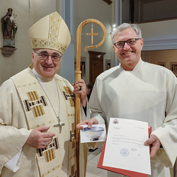 Johannes Chum aus unserem Seelsorgeraum ist unter den Diakonkandidaten, die am 14. Dezember von unserem Diözesanbischof Wilhelm Krautwaschl zum Akolythat beauftragt wurden. Diese Beauftragung erfolgte im Rahmen einer Heiligen Messe in der Kapelle der Lebenswelten der Barmherzigen Brüder in Kainbach bei Graz. Der Gottesdienst bildete den Abschluss eines Studientages für die ständigen Diakone in Ausbildung zum Thema Commitment und Rolle der Diakone im Seelsorgeraum.