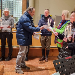 Mit der Frage „Glaubst du das?“, lud die ökumenische Gruppe ein, den eigenen Glauben zu hinterfragen. Reiner Hasenauer von der Neuapostolischen Kirche ermutigte uns in der Predigt, Fragen zu unserem christlichen Tun zu stellen. Sein Resümee: Jesus ist in unseren Nächsten mit uns. Als Zeichen dieser Verbundenheit in Christus wurde das Licht der Osterkerze für alle verteilt.